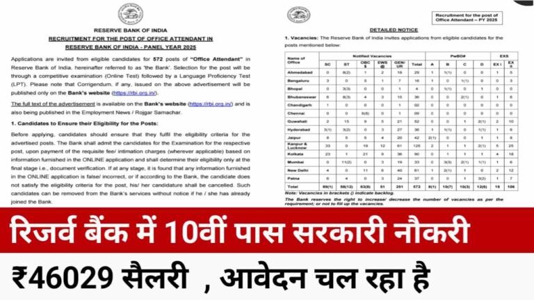 RBI 10th Pass Office Assistant Notification Out 2026: सरकारी नौकरी की तलाश कर रहे युवाओं के लिए बड़ी खुशखबरी है। …