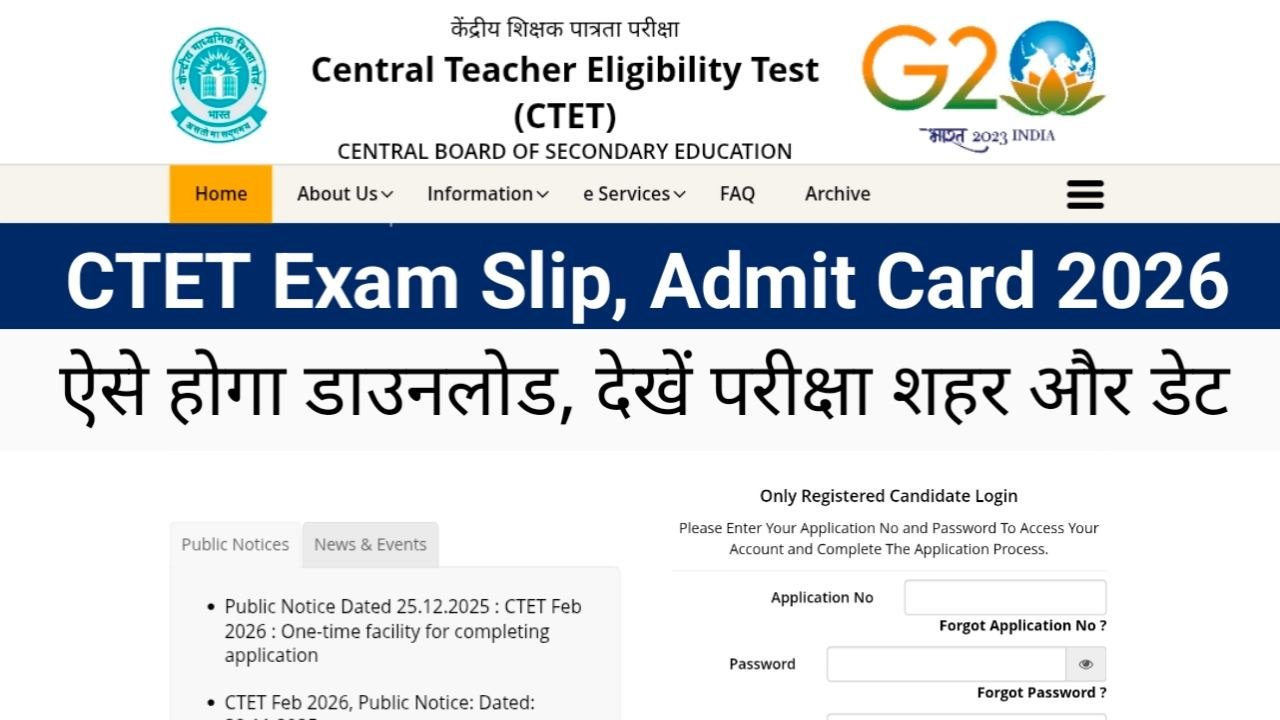 CTET 2026 City Intimation Slip, Admit Card: केंद्रीय शिक्षक पात्रता परीक्षा CTET 2026 (फरवरी सत्र) के लिए आवेदन प्रक्रिया पूरी हो चुकी है। अब परीक्षा में शामिल होने वाले लाखों अभ्यर्थियों की नजर सिटी इंटिमेशन स्लिप और उसके बाद जारी होने वाले एडमिट कार्ड पर टिकी हुई है। यह परीक्षा केंद्रीय माध्यमिक शिक्षा बोर्ड (CBSE) द्वारा आयोजित की जाती है और हर साल देशभर से बड़ी संख्या में उम्मीदवार इसमें शामिल होते हैं।