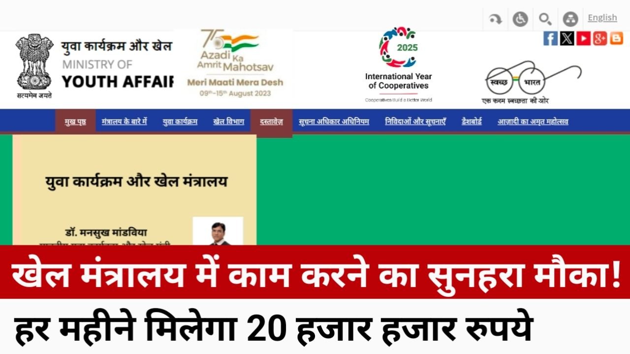 MYAS Internship 2026: खेल और प्रशासन के क्षेत्र में करियर बनाने का सपना देख रहे युवाओं के लिए बड़ी खबर है। केंद्रीय युवा मामले और खेल मंत्रालय (MYAS) ने कॉम्प्रिहेंसिव इंटर्नशिप प्रोग्राम (Comprehensive Internship Programme) के तहत पेड इंटर्नशिप के लिए आवेदन आमंत्रित किए हैं। इस इंटर्नशिप के अंतर्गत कुल 20 पदों पर योग्य उम्मीदवारों का चयन किया जाएगा। इच्छुक अभ्यर्थी 31 जनवरी 2026 तक आवेदन कर सकते हैं।